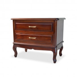 Criado madeira nobre, duas gavetas, puxador em metal dourado.